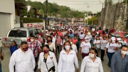 _*- Bajo una intensa lluvia, habitantes de Aquismón acompañaron a la candidata morenista en su andar por las calles. –…