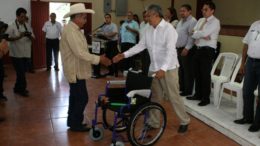 Entrega alcalde Jorge Terán silla de ruedas en apoyo de habitante del ejido el Platanito 3.