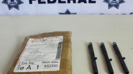 Agentes federales aseguraron tres bolígrafos adaptados con mecanismo para realizar disparos siendo encontrados en un servicio de paquetería en las…