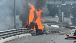 El vehículo, que transportaba 49 mil 500 litros gas, se volcó e hizo explosión cerca del Puente de la Concordia…