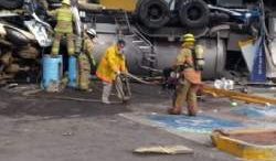 La tienda presenta daño estructural en la fachada, mientras que una camioneta de transporte de personal también resultó chocada. Se…