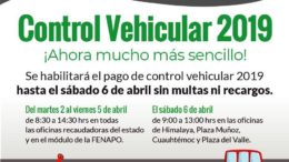 El pago de control vehicular 2019 se habilitará hasta el sábado 6 de abril sin multas ni recargos. Lo anterior…