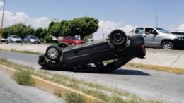 Dos lesionados es el saldo de volcadura en la lateral de la carretera a Matehuala
