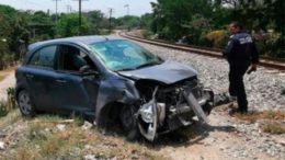 Ciudad Valles SLP El conductor de un automóvil compacto se estrelló contra el tren la tarde del viernes en la…