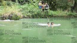 Tamasopo SLP Trece turistas del estado de Jalisco se llevaron un susto al hundirse la lancha donde viajaban . Elementos…