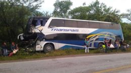 Huehuetlán SLP El chófer de un autobús de la linea transpaís durmió en el volante y choco contra un…
