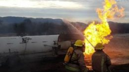 Matehuala S.L.P. Una pipa cargada de gas lp, se incendio al volcar en la carretera 57 , la cual permaneció…
