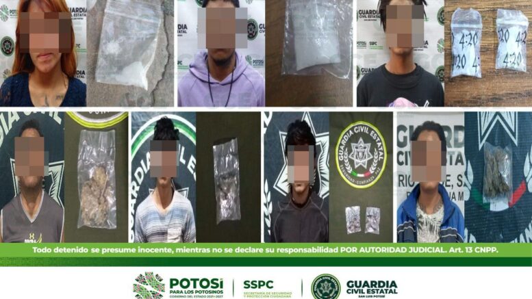 S.L.P.- Oficiales de Guardia Civil Estatal (GCE) detuvieron en las últimas 24 horas a 14 personas por probable posesión de enervantes, estas acciones fueron derivadas de los diferentes dispositivos efectuados en la capital y la zona conurbada, así como en el interior del Estado.