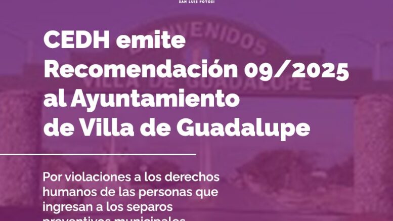 Por lo anterior la CEDH emitió la Recomendación 9/2025 dirigida al Ayuntamiento de Villa de Guadalupe, bajo los siguientes puntos recomendatorios: