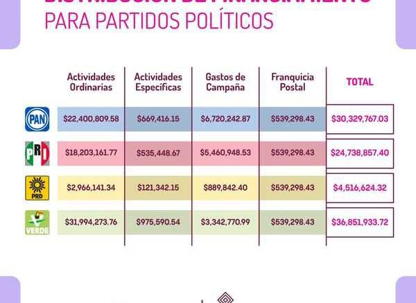Adicionalmente, los partidos políticos locales recibirán cada uno $233,415 pesos.