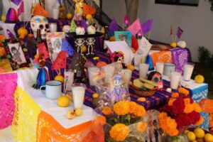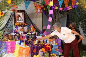 Durante el festejo, personas adultas mayores degustaron de un tradicional pan de muerto y chocolate artesanal, compartiendo gratos momentos y recuerdos sobre los familiares que ocuparon un lugar en el altar, con una fotografía y ofrenda que honró la memoria de sus seres queridos; más tarde participaron en la exposición de calaveritas, que fueron calificadas por cada asistente a la celebración.