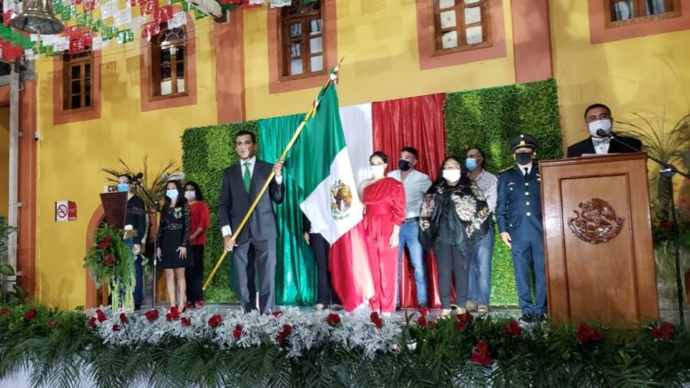 Con la bandera de México ondeando, el Primer Edil dió el tradicional “Grito” en conmemoración del 210 aniversario del inicio de la independencia de México, teniendo como marco un elegante escenario diseñado para esta ocasión, acto en el que estuvo acompañado por su esposa la presidenta del DIF Sra. Joanna Cárdenas Palomares, La Lic. Irma Salazar Juárez, Sria. Del Ayuntamiento, el Lic. Rosendo Pecina Elizalde Síndico Municipal, el capitán segundo de infantería Iván López Martínez en representación del coronel Rodolfo Blancas Osorio, regidores y algunos otros funcionarios municipales y ejidales de El Refugio.