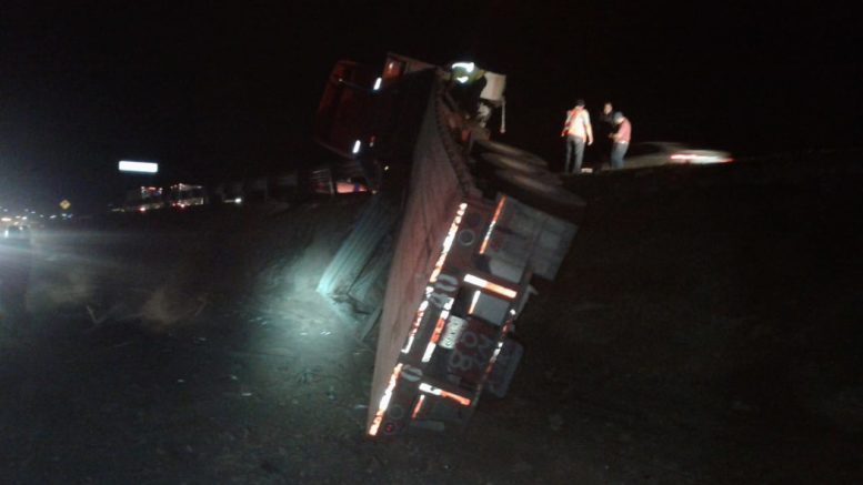 La presencia de un semoviente en la carretera originó que el conductor de un tracto camión chocará y volcará su unidad la noche del miércoles.