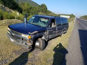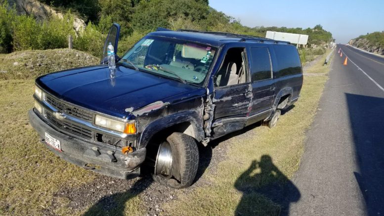 vehiculo  marca Chevrolet tipo suburban en color azul marino con placas de circulación del estado de Tamaulipas, conducido por Roberto ‘N’ de 39 años de edad, resultando ileso el conductor, únicamente daños en el vehículo de $10,000.00 pesos