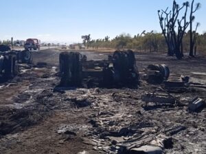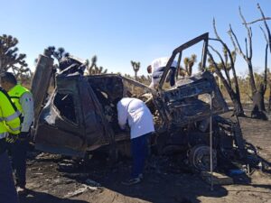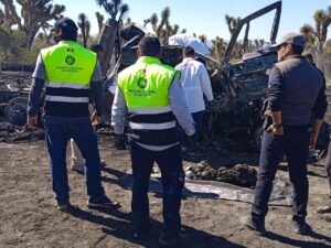 Detalló que al lugar llegaron bomberos de Matehuala quienes lograron apagar el fuego de la unidad, mientras que elementos de la Coordinación Estatal de Protección Civil apoyaron en el rescate del cuerpo del chofer que falleció calcinado en el lugar.