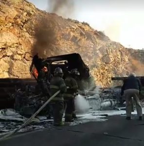 Se confirmó que paramédicos de la Cruz Roja trasladaron al trailero para su atención médica en tanto que el honorable cuerpo de Bomberos procedió a controlar las llamas del siniestro.