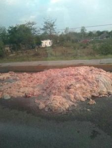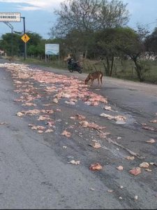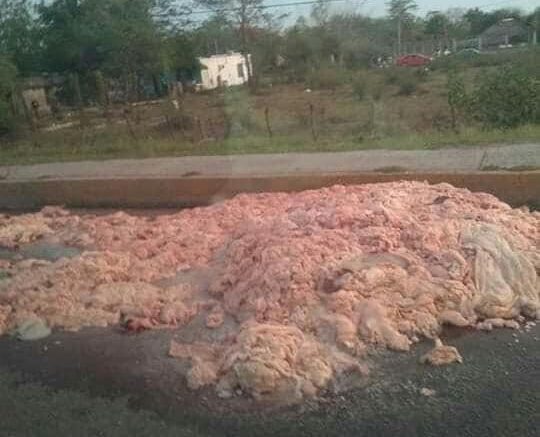 El hecho se registró en la entrada al municipio de San Vicente un camión cargado con víscera de animal tiró parte de su cargamento al abrirse la caja.
