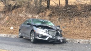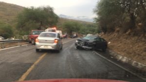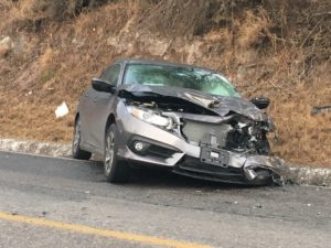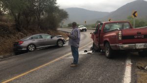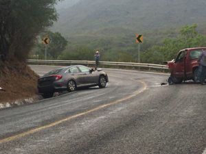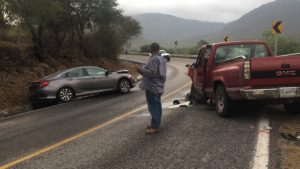 Cuatro integrantes de una familia de la comunidad del tanque de San Juan del municipio de Rioverde resultaron lesionadas al ser chocada la camioneta donde se transportaban por una automóvil último modelo que invadió carril y se impactó de frente en una curva prolongada.
