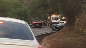 En el levante tres menores de edad que viajaban en la camioneta y su padre sufrieron lesiones de consideración siendo trasladados por personal de cruz roja y de una ambulancia del imss coplamar al municipio de Rioverde