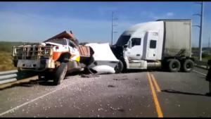 Cinco personas lesionadas es el saldo de choque por alcance de tráiler contra camión materialista