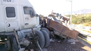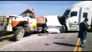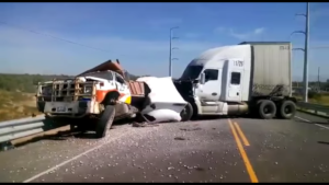 El accidente se registró  a la altura del km 9 Donde un  tráiler que viajaba a exceso de velocidad se impactó contra un camión materialista  donde viajaban cinco trabajadores .