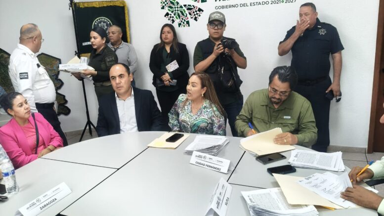 El alcalde Loredo Hernández, acompañado por el director de Seguridad Pública y Tránsito Municipal, Capitán Segundo de Infantería Retirado Néstor Daniel Medina Lugo, acudió a la ciudad capital para formalizar este acuerdo, impulsado por la Secretaría de Seguridad y Protección Ciudadana (SSPC) del Estado.