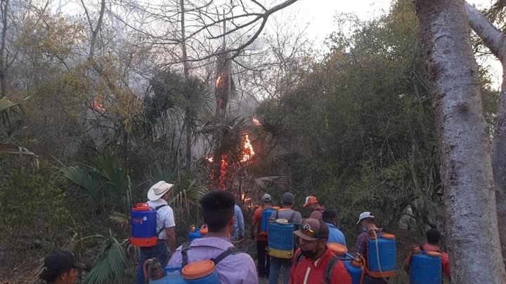 Tras la detección de un incendio forestal en los límites de la comunidad de el huizache .