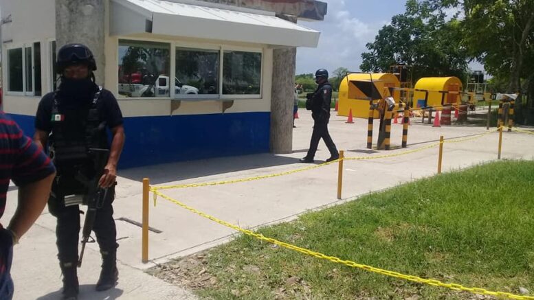Poco antes de las 2 de la tarde, personal de la Dirección de Comercio y del Rastro Municipal de Tamuín, colocaron sellos de clausura en la entrada a la empacadora Gusi.
