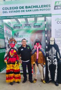 Entre las actividades presentadas en el módulo se contaron destacadas intervenciones, como la actuación de la alumna solista del plantel 10 de Moctezuma, quien amenizó el espacio con la presencia de “Correcaminos”, la querida mascota institucional. Además, la compañía de Danza Folclórica conformada por el personal docente y administrativo del Cobach deleitó al público con sus presentaciones.