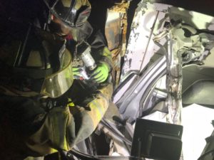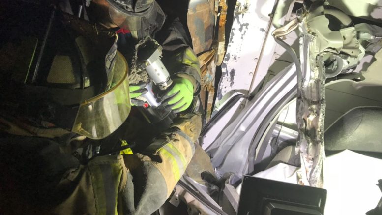 Bomberos de Rioverde trabajaron en el lugar más de una hora para poder rescatar los cuerpos del matrimonio que quedaron en los fierros retorcidos de la cabina de la camioneta .