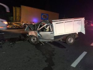 Un matrimonio originario de Rioverde perdió la vida al  chocar la camioneta donde viajaban por alcance contra la parte trasera de un trailer contenedor  Los hechos se registraron la madrugada de hoy en el kilómetro 124+800 de la carretera 70 Tampico Sanchez Roman a la altura de la “garrapata”.en el tramo Rioverde -Rayón.