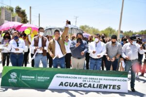 Al arrancar su visita por este municipio, el Mandatario Estatal entregó la pavimentación de las calles Vicente Guerrero y Aguascalientes de la localidad Dulce Grande, mismas que iniciaron en octubre del año pasado y que requirieron una inversión de cinco millones de pesos. Dichas obras incluyeron la intervención de 4 mil 827 metros cuadrados con concreto hidráulico, preparación del terreno, trazo y nivelación, excavaciones, relleno para banquetas y limpieza, beneficiando a casi seis mil habitantes.