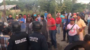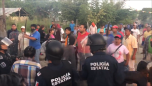 Después de una larga discusión e intentos de entrar al lugar los policías se retiraron pues los habitantes del lugar los esperaban con machetes y llantas así como cercados de alambre que fueron colocadas como barricadas .