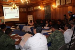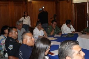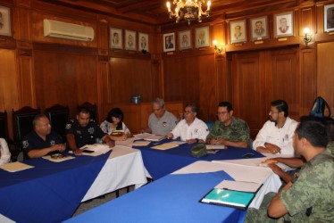 La reunión fue presidida por el Secretario del Ayuntamiento, Rubén González Juárez, en representación del Alcalde, José Ramón Torres García; contándose con la asistencia de la Regidora María de los Ángeles Castillo Rodríguez, Presidenta de la Comisión de Seguridad Pública del Ayuntamiento; y el Síndico Municipal, Ulises Ledesma Salazar.
