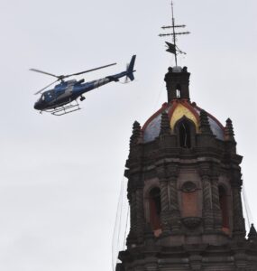 Como parte de los objetivos fijados por la autoridad estatal en el combate diario de hechos constitutivos de delito, se implementa la vigilancia aérea y terrestre, con elementos de la Guardia Civil Estatal, apoyados en los recorridos terrestres, efectuándose sobrevuelos en polígonos a bordo del helicóptero Potosí 1 en la periferia sobre municipios de la región Media y Huasteca, así como sectores de difícil acceso como brechas y predios; actuando de manera coordinada con las unidades policiales en tierra.