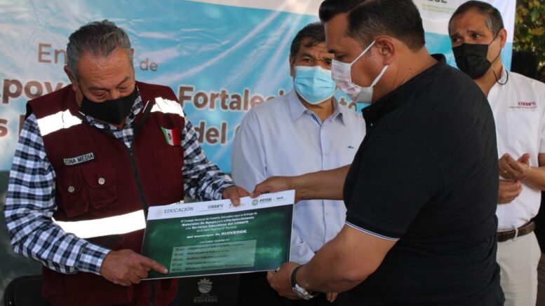 En las instalaciones del Tecnológico Nacional de México Campus Rioverde se llevó a cabo la entrega de materiales de apoyo a servicios educativos como artículos de limpieza y protección para mitigar los efectos de la COVID19 y complementos de útiles escolares, material para el aula así como auxiliares didácticos que serán utilizados en las localidades más alejadas de la cabecera municipal donde se aplica el programa del Consejo Nacional de Fomento Educativo (CONAFE).