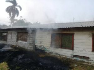 Se informó que por razones desconocidas se empezó a quemar una parte enmotada, pero luego la lumbre llegó hasta un salón de madera y lámina, pero afortunadamente los bomberos llegaron a tiempo y evitaron que las pérdidas fueran totales.