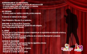 El Gobierno Municipal encabezado por el Alcalde Arnulfo Urbiola Román, por medio de la Instancia Municipal de la Juventud #IMJUVE invita a participar en el concurso de canto: