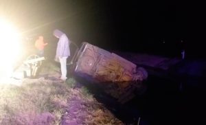 El conductor de un vehículo con placas de la UNTRAC perdió el control de su camioneta y termino volcado en las aguas del canal de la media luna , en este mes ya son tres vehículos los que sufren accidente y se cree que es por manejar sin precaución y bajo los influjos del alcohol o alguna droga.