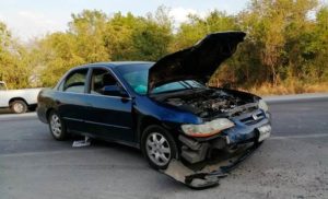 Version de los testigos aseguran que la la conductora de un Nissan March, color verde con dirección de Ciudad Valles a Tamuín pero a la altura de El Nacimiento dio vuelta sin precaución y le cortó la circulación a un automóvil Honda Accord color azul, que era guiado por un hombre y con el viajaban una mujer y tres menores de edad.