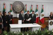 El secretario de Gobernación, Miguel Ángel Osorio Chong, entregó el documento al presidente de la Mesa Directiva.