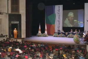 “La Benemérita y Centenaria Escuela Normal del Estado, en este nuevo milenio, avanza significativamente en la formación inicial de profesores para la educación básica, en generación de programas para la profesionalización docente a nivel posgrado, y avances positivos en la investigación, que la ubican como una institución de educación superior, cumpliendo son las misiones sustantivas de docencia, investigación y extensión”.