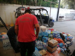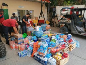 La Dirección de Protección Civil Municipal, continua con el traslado de víveres, agua embotellada y sueros, principalmente, en apoyo a las brigadas de la SEDENA, CONAFOR y voluntarios de comunidades cercanas, que se encuentran combatiendo los dos incendios forestales que continúan activos en lo alto de la sierra, en las inmediaciones del Ejido La Loma, así como entre Huertitas y El Freno.