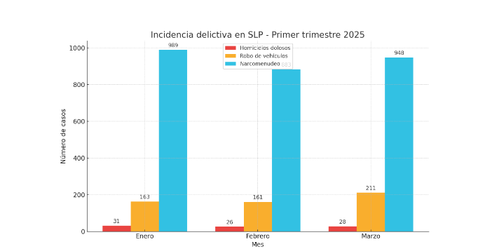 Además del tema de homicidios, el reporte también destaca que mil 617 personas fueron víctimas de delitos del fuero común en el primer trimestre del año, la mayoría relacionados con afectaciones a la vida y la integridad física. De ese total, mil 212 casos corresponden a lesiones tanto dolosas como culposas, delito que muestra un comportamiento creciente mes con mes: 275 en enero, 331 en febrero y 400 en abril.