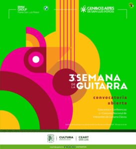 Las expresiones culturales son necesarias para la formación, educación y promoción de valores básicos en niñas, niños, adolescentes y jóvenes, que necesitan en estos tiempos de asideros éticos que les impidan perderse en las adicciones o la violencia, por lo que el Gobierno del Estado, a través de la Secretaría de Cultura de San Luis Potosí, como instancia comprometida con todos los sectores de la población, convoca a intérpretes apasionadas y apasionados por la música, a participar en el Tercer Concurso de Intérpretes de la 3ª Semana de la Guitarra que se llevará a cabo en el mes de abril, en el marco del 14º Festival Música Libre del Centro de las Artes de San Luis Potosí, y para la cual ya se encuentra abierta la convocatoria 2022.