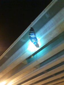 Costal con “botellas “ colgada en Puente causa movilización policial.
