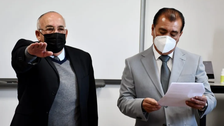 Personas inconformes con su designación, asentaron en una manta que es “investigado por feminicidio, lo destituyen por malos manejos en Conafe, robo de fideicomisos, robo de la casa blanca, prepotencia y corrupción”.