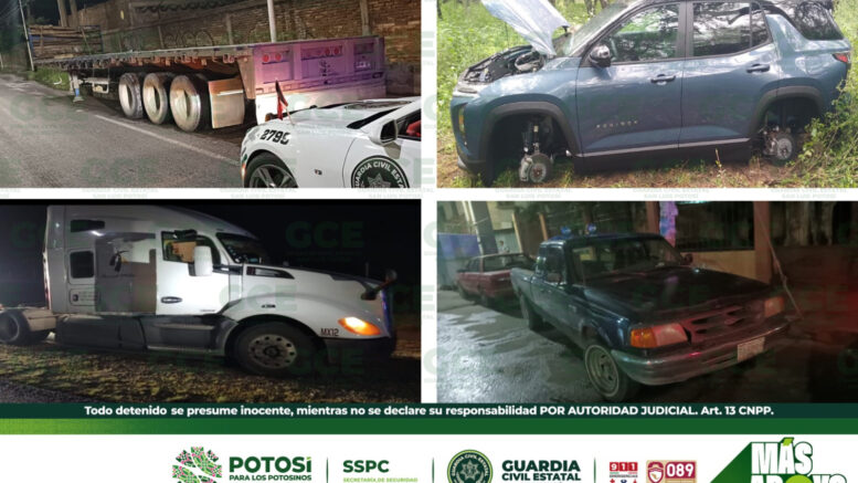 S.L.P.- Como resultado de los trabajos de búsqueda de vehículos con reporte de robo, agentes de la División Caminos de la Guardia Civil Estatal, localizaron en las últimas horas dos unidades de carga y dos automotores particulares.