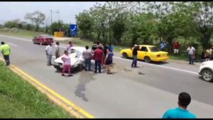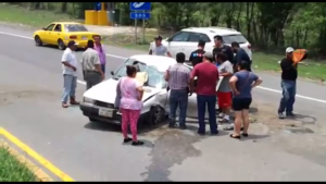 El vehículo tsuru ruletero venía rumbo a valles y se distrajo pegando con la guarnición del camellón y salio de su carril para caer en carril contrario.