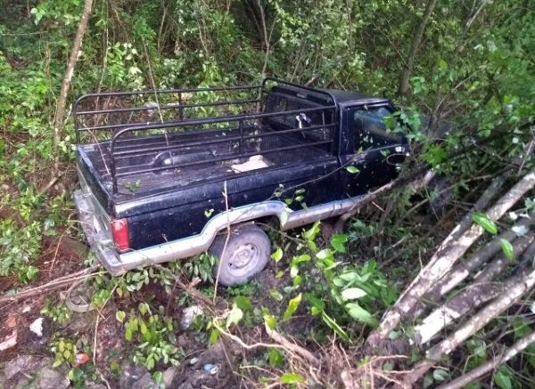 El conductor de una camioneta marca Chevrolet S10 color negro, circulaba a velocidad inmoderada y en una curva su unidad derrapó por el pavimento mojado saliendo del camino y volcar a un desnivel .